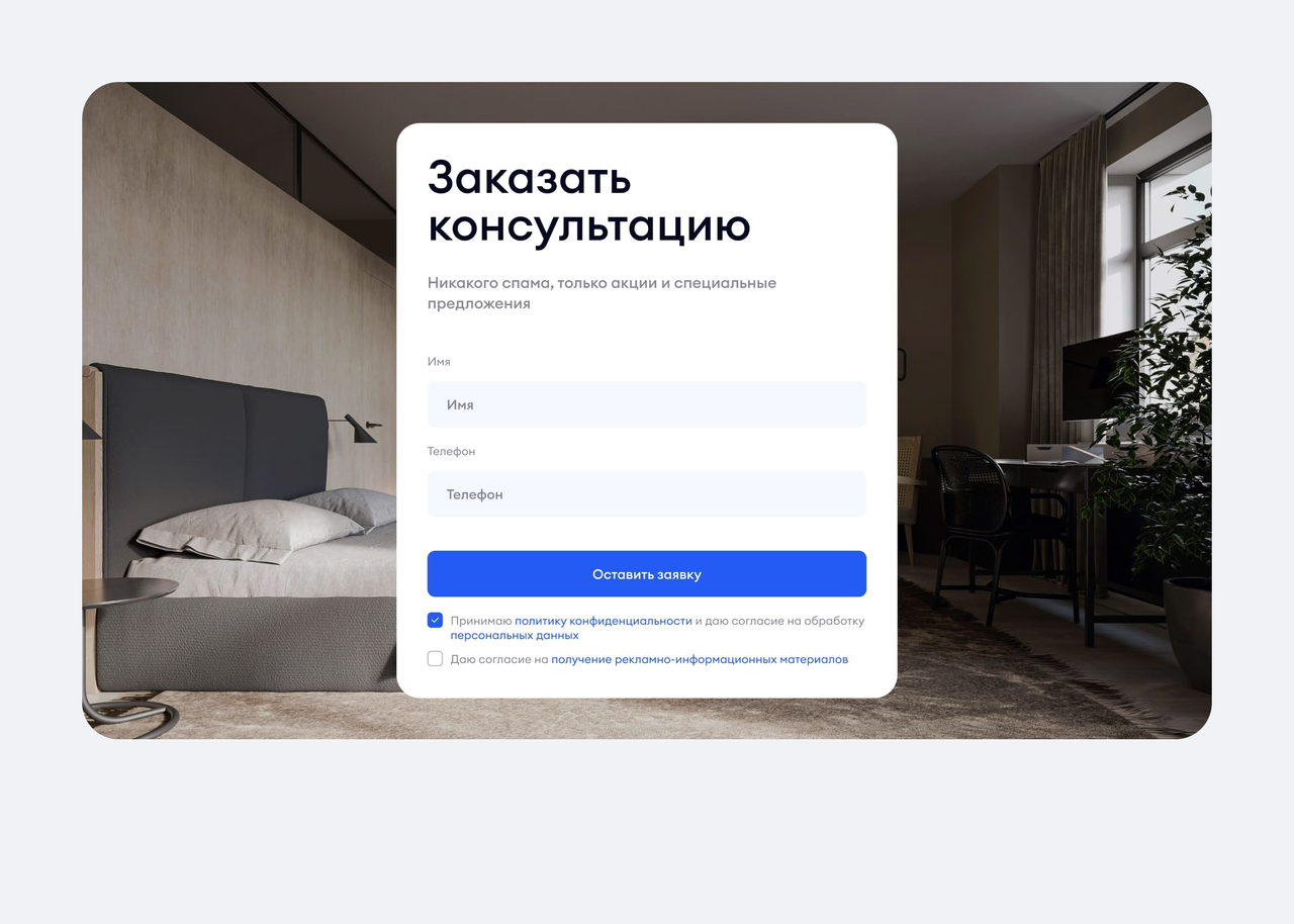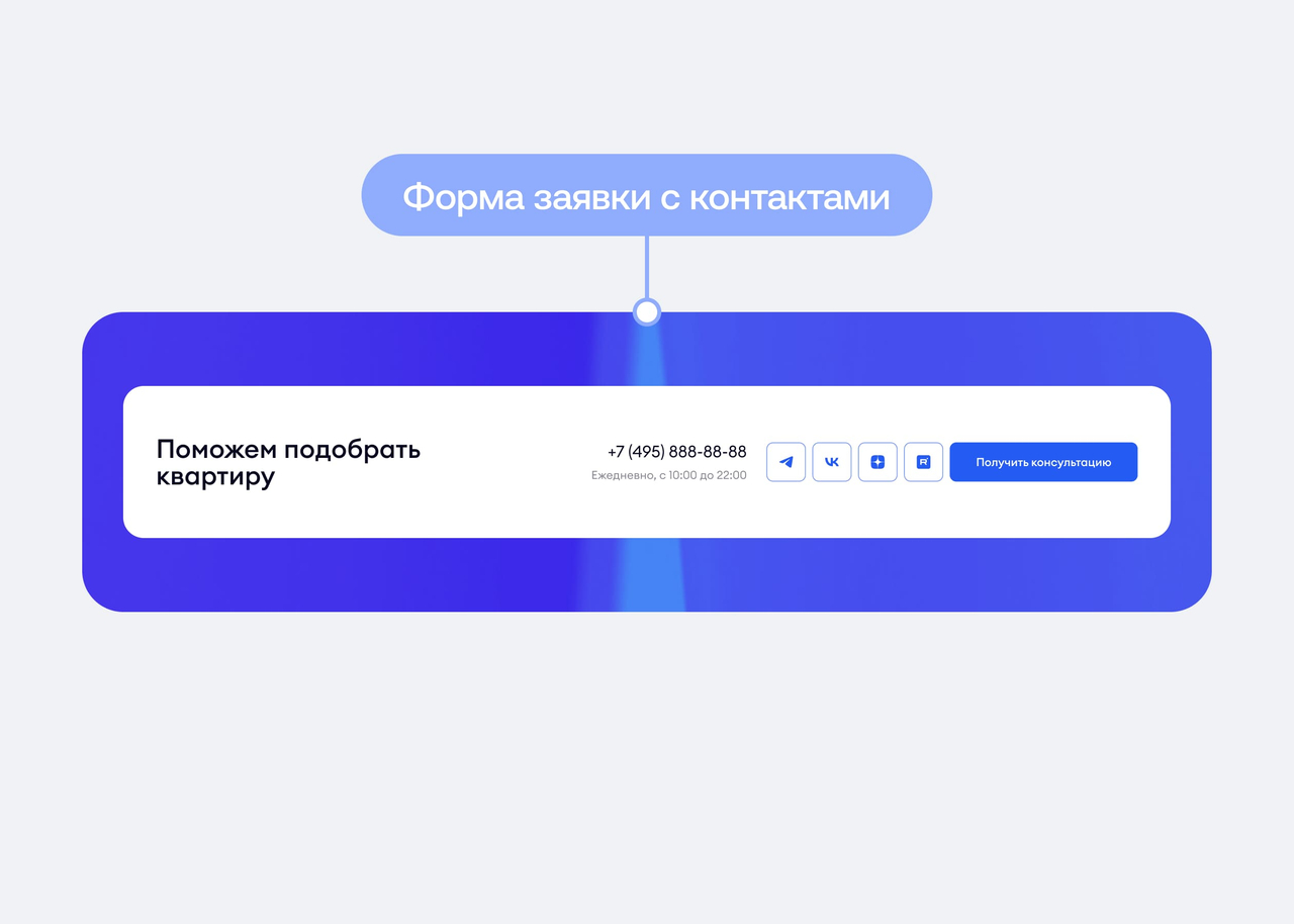 Добавлен блок объединяет контакты и форму в одном блоке, повышая удобство и конверсию.