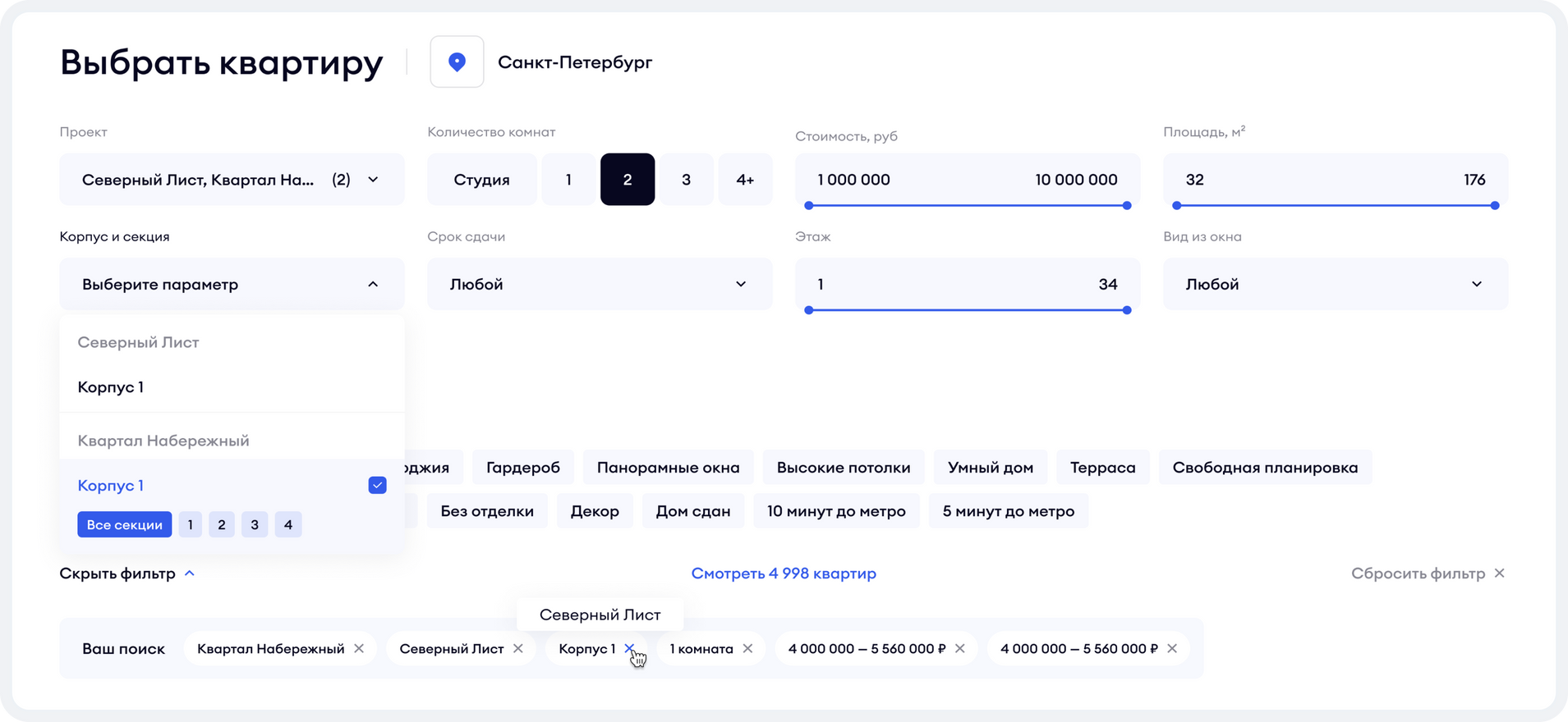Исключение забронированных квартир