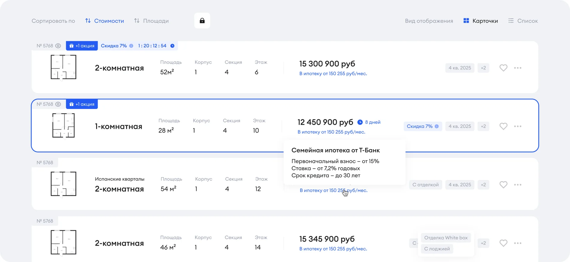 Акционные лоты теперь выделяются на шахматке и показываются в отображении списком, чтобы быстрее ориентироваться в спецпредложениях. Это делает акции более заметными и понятными для менеджеров, ускоряя выбор и снижая риск ошибок.